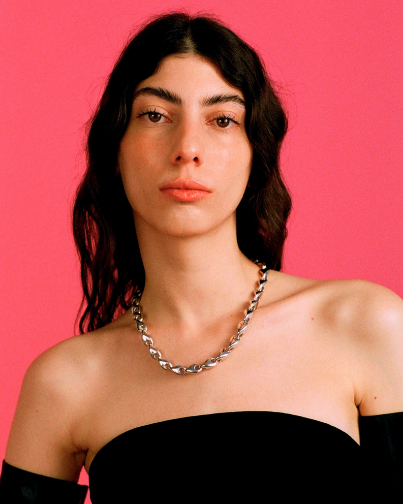 The Velvet Necklace in Silver by Jasmin Sparrow is a bold yet fluid statement piece. Designed to drape naturally across the collarbone, it reflects sculptural refinement through a series of softly contoured links.