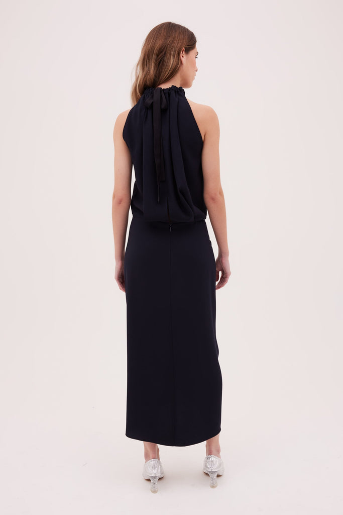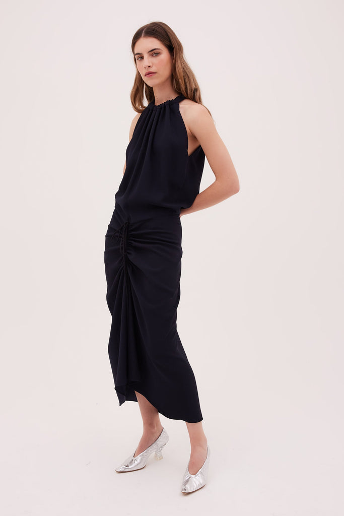 Navy Satin Crepe Majorca Dress