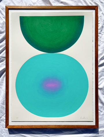 Chosen for contrast and opposing tones, the colour palette and abstract forms work together to create considered balance and symmetry that can evoke a sense of calm and escapism.
