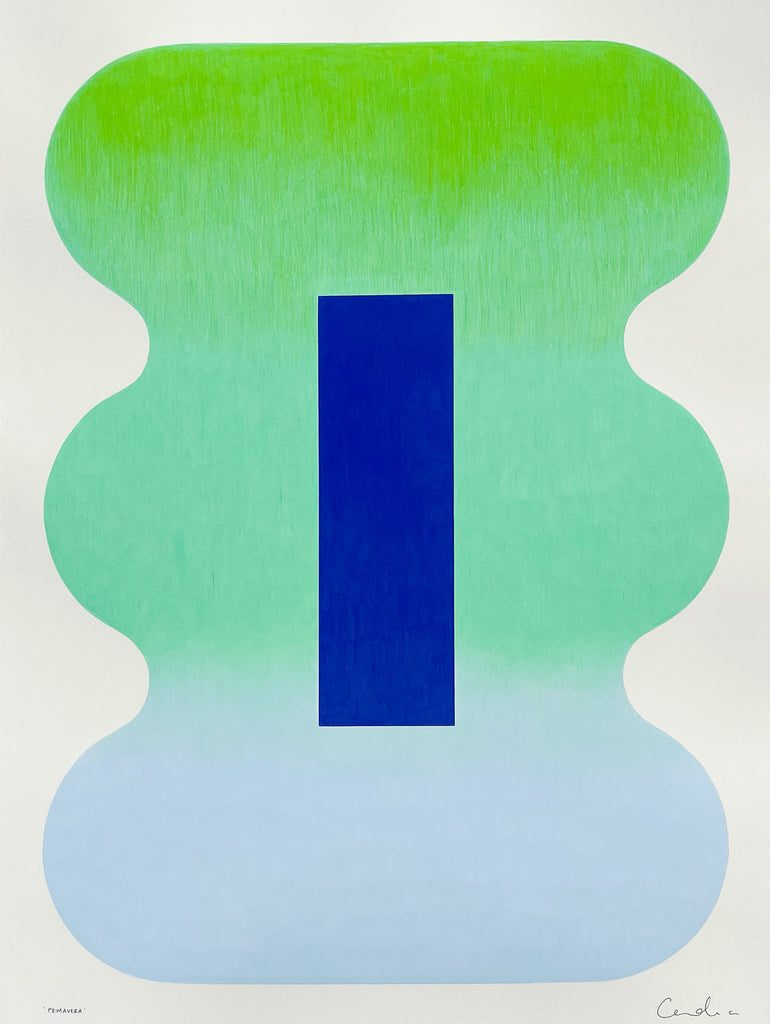 Chosen for contrast and opposing tones, the colour palette and abstract forms work together to create considered balance and symmetry that can evoke a sense of calm and escapism.