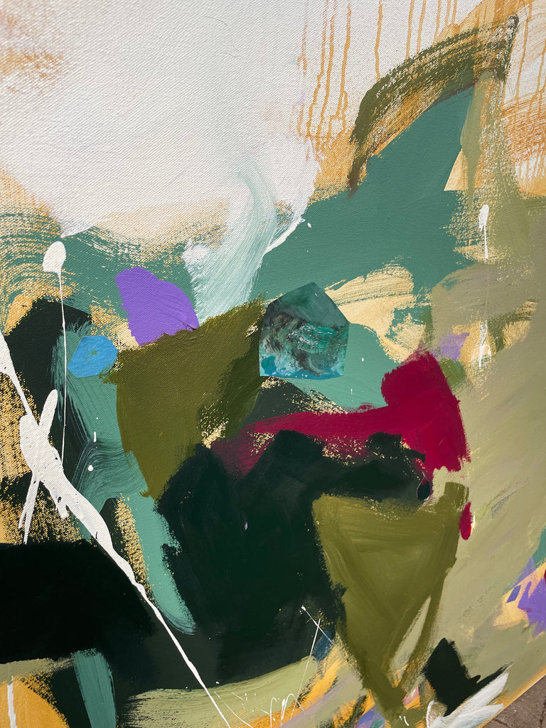 Its a subconscious flow state of colour, mark making and composition. Be delighted by the journey and immerse yourself in the beauty of a Cassi George piece of art.