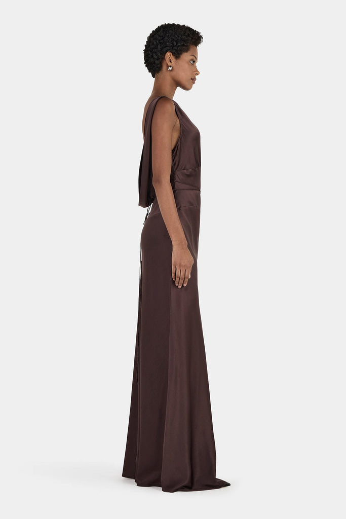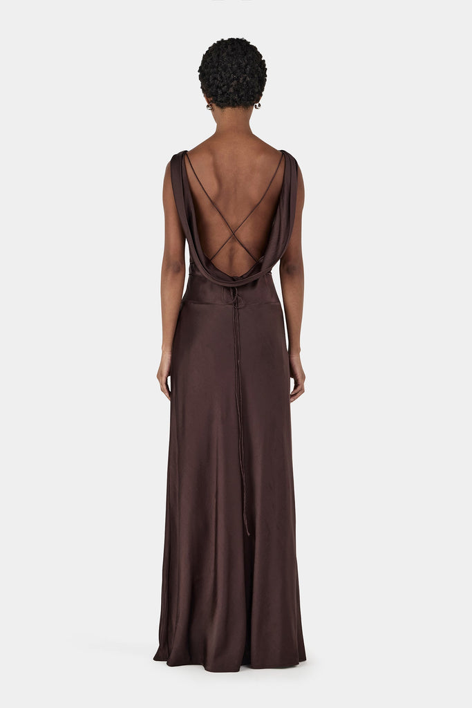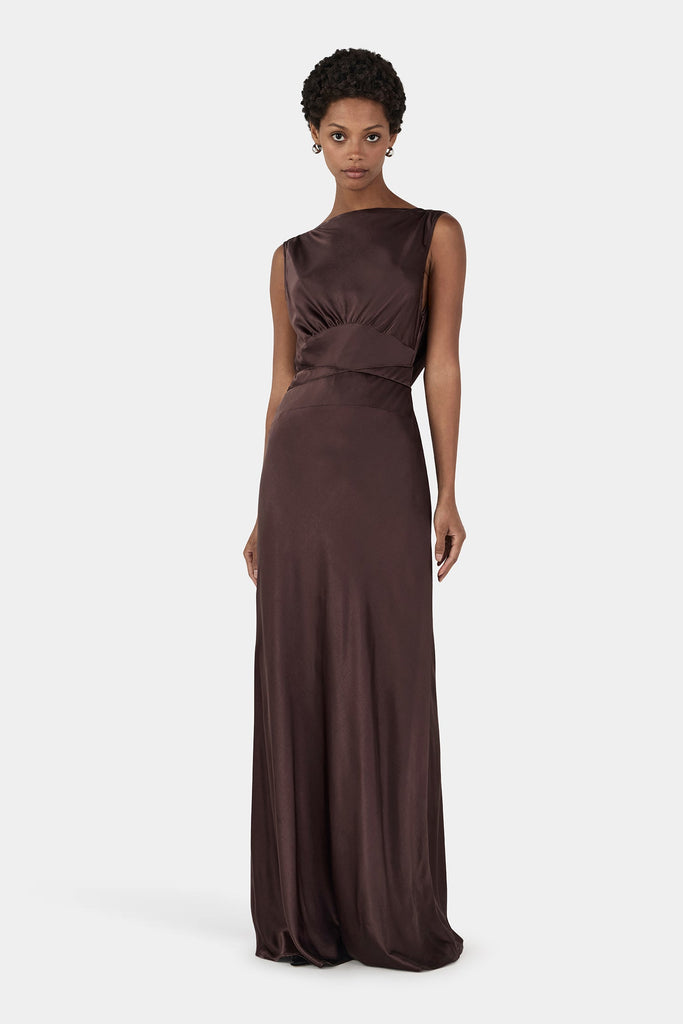 A Hansen & Gretel staple, the Clara Bias Dress is a maxi silhouette cut on the bias for a fluid drape over the figure. Featuring a wide neckline that frames the shoulders and flows into an open back, it is crafted from a luxurious silk blend — a go-to for any occasion.