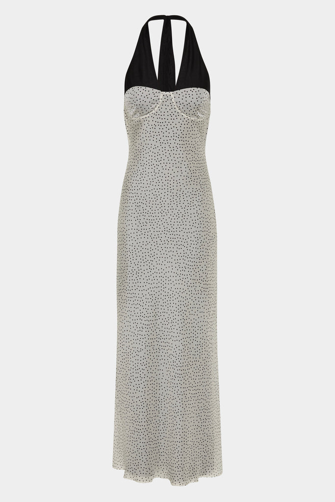 A lightweight layer with fluid movement, the Lisander Long Sleeve Dress in Polka Dot Nero is crafted from semi-sheer silk chiffon for an airy, effortless silhouette. Designed for versatility, it can be worn over swim or styled with the included slip for added coverage.