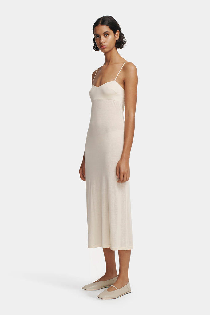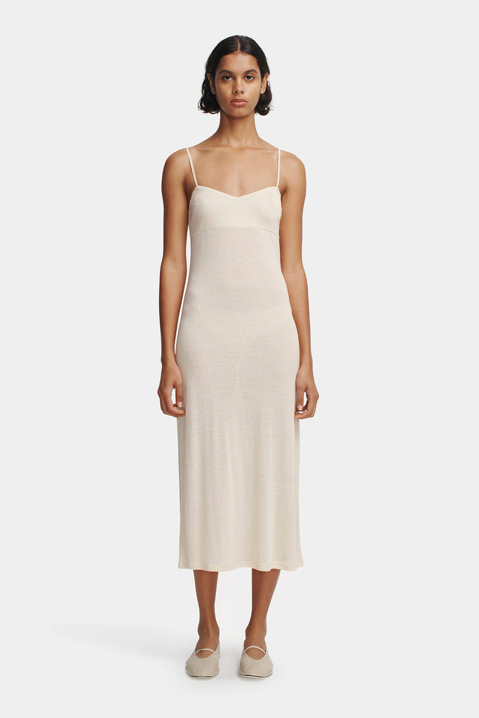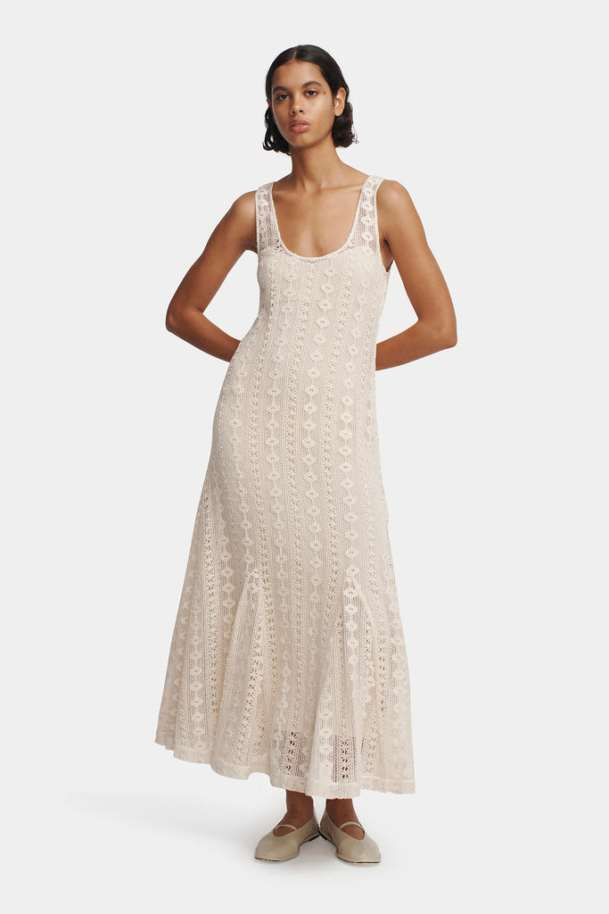 The Olive Midi Dress in Natural is a textural statement grounded in ease. Knitted from breathable cotton yarn with a softly structured lining, it moves effortlessly between day and evening wear.