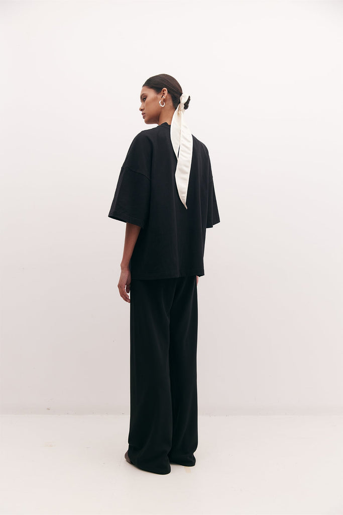 Featuring a luxurious brushed cotton with a suede-like handfeel, the Gibson Tee in Black bridges the gap between the aspirational and the everyday. With an oversized fit, drop shoulders, and elbow-grazing sleeves, it brings ease and polish to daily wear.