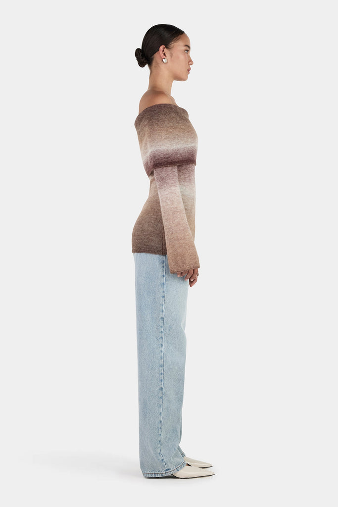 The Naziree Knit Top in Mocha Marle is a lightweight layer with a soft, airy finish. Blending mohair and wool, it offers gentle warmth and a semi-sheer texture for effortless transseasonal wear.