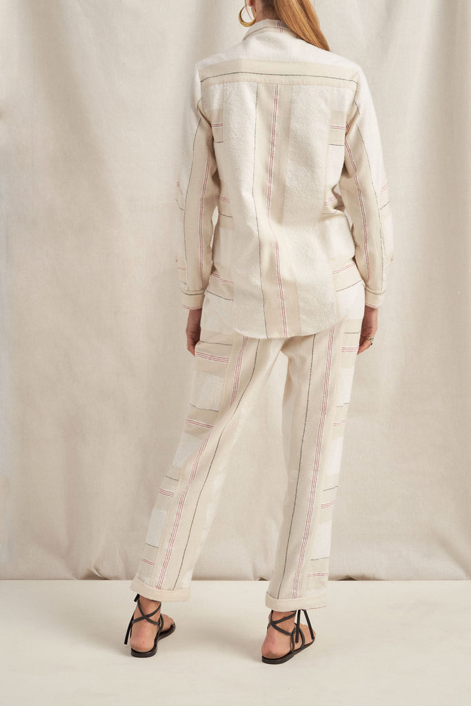 Handloom cotton boucle featuring subtle cream stripe patterning