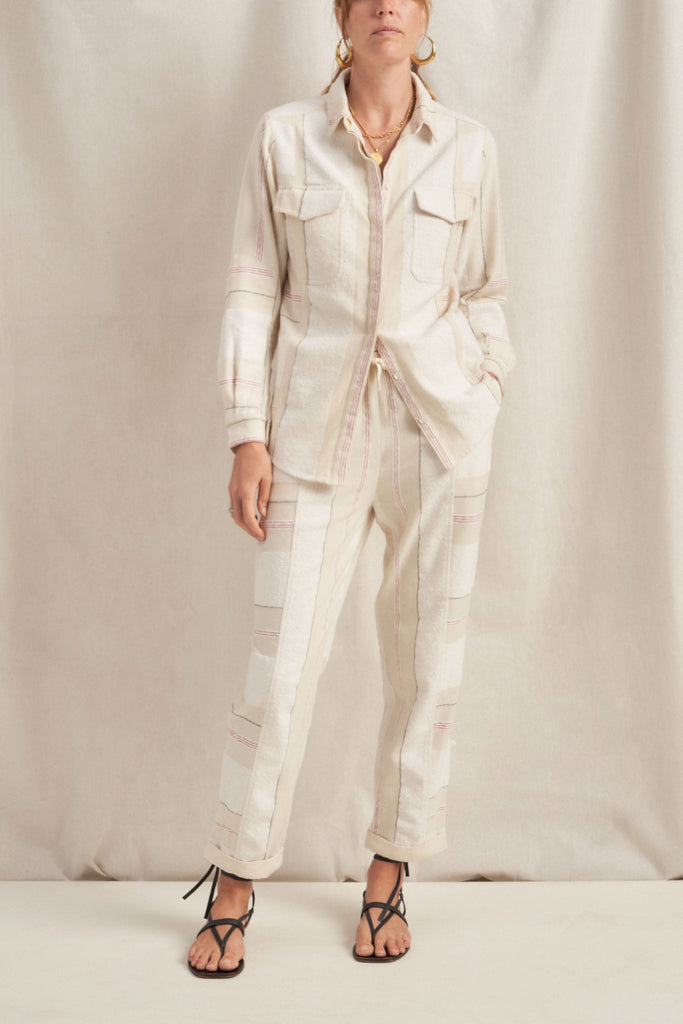 The Paris Cream Boucle Stripe Shirt offers a refined yet relaxed silhouette, woven in soft cotton boucle with tonal stripes for understated texture. With its gentle drape and minimalist cut, it transitions effortlessly from relaxed weekends to elevated gatherings.