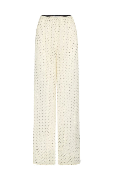 Softly tailored with a feminine twist, the Irving Trouser by Harris Tapper elevates classic suiting with luxurious silk in a delicate cream polka dot print. Flowing effortlessly with a fluid drape, these trousers offer a sophisticated yet playful silhouette that moves beautifully with the body. Designed for refined comfort and modern elegance, they are perfect for elevating both day and evening looks.