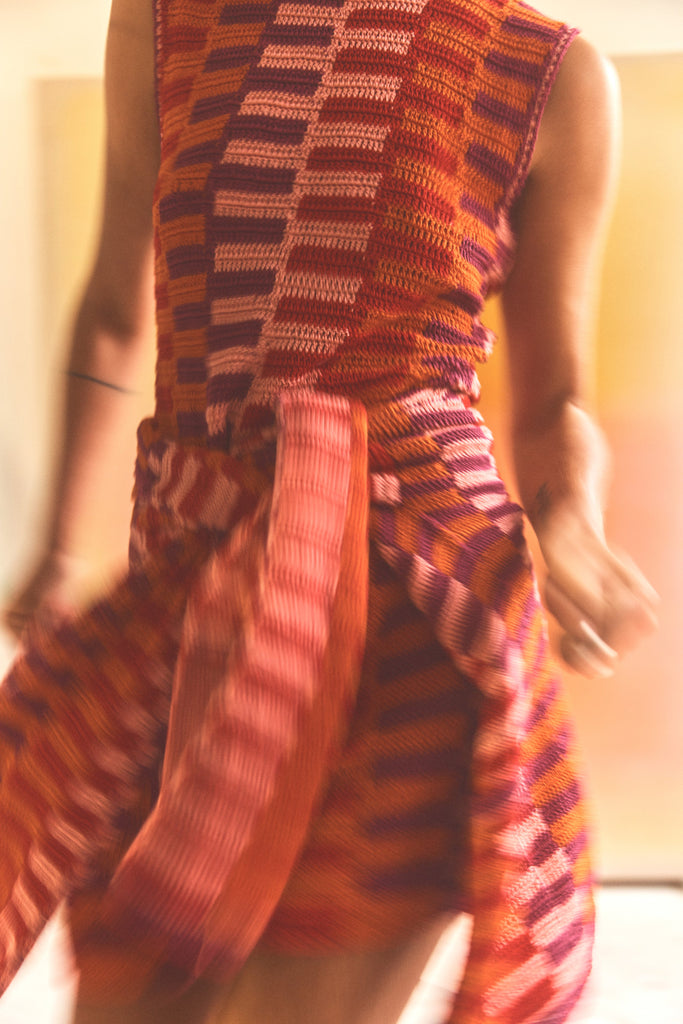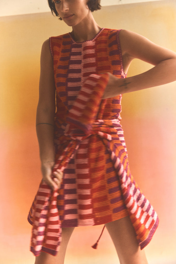 The Aero Crochet Dress is a handcrafted silhouette that balances openness and structure. Made from breathable Pima cotton, it offers textural elegance and relaxed femininity for summer dressing.