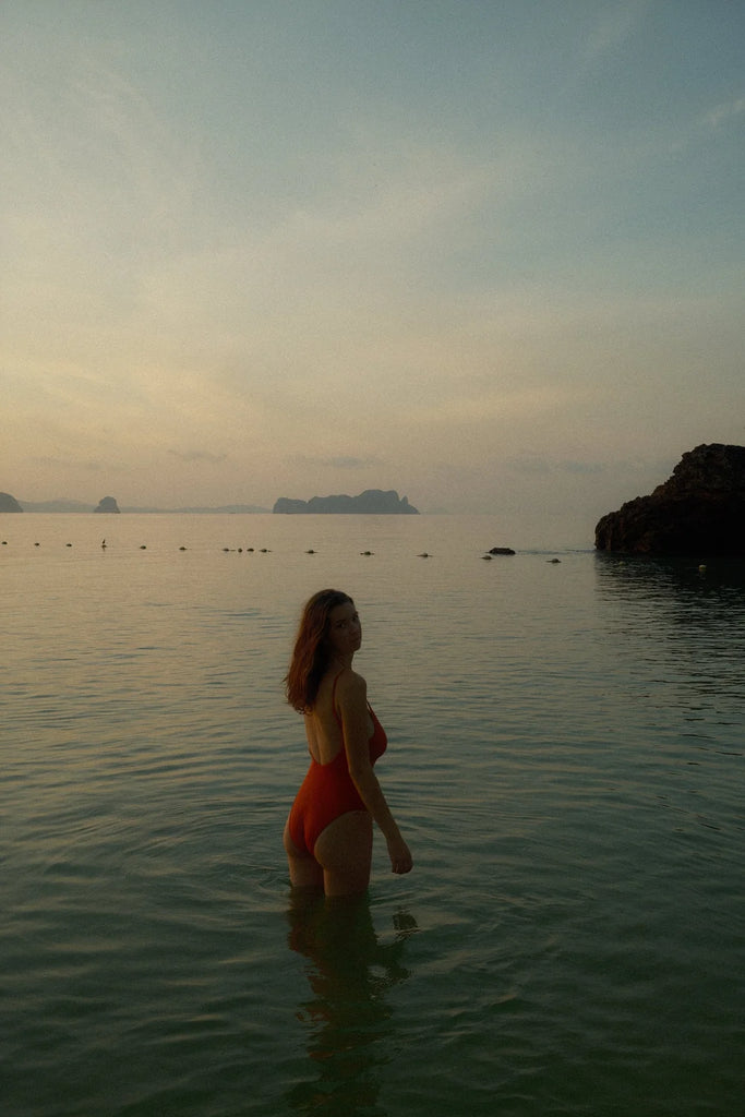 The Scoop One Piece by Innes Lauren is crafted from recycled Italian ECONYL® fabric in a matte Orangina tone. Featuring a low scoop back, adjustable straps, and a built-in bra shelf, it balances ease with support. A self-lined double layer ensures durability, comfort, and longevity, offering versatility beyond the beach.