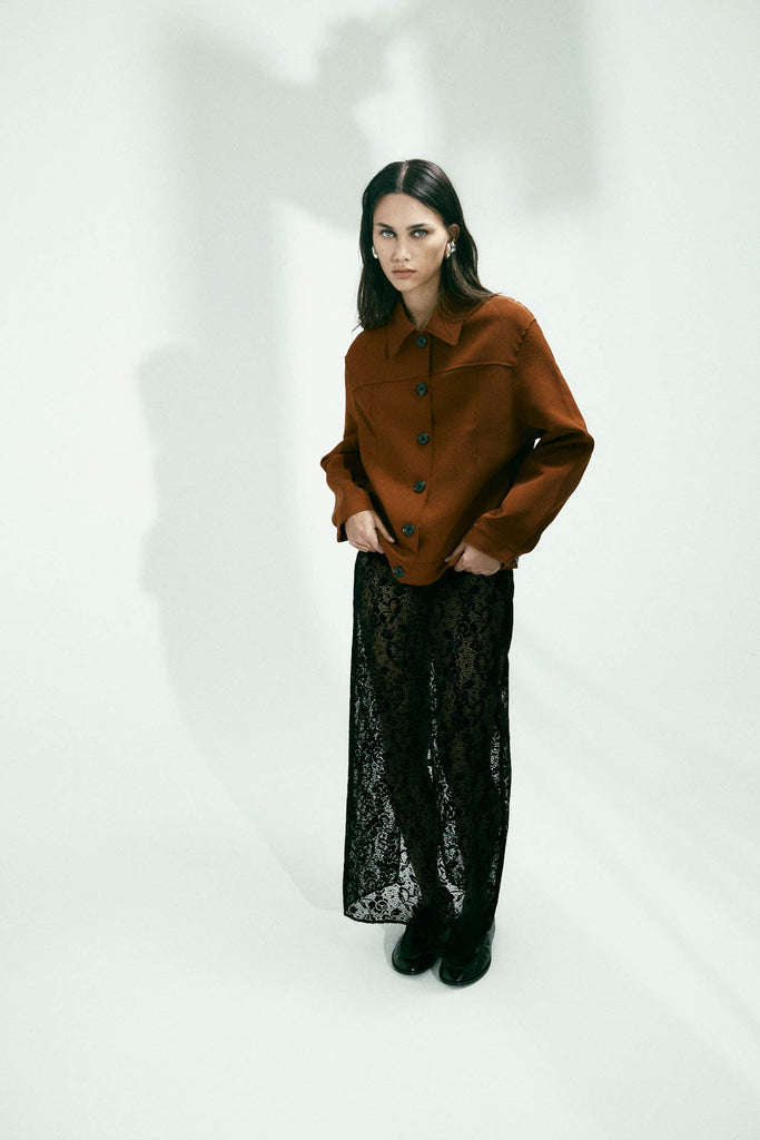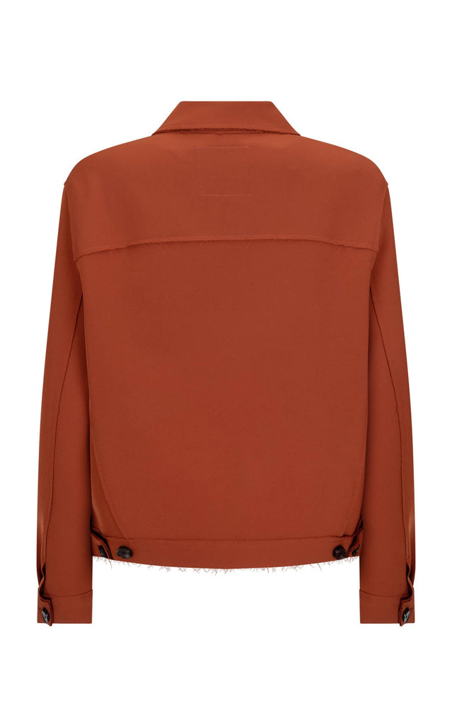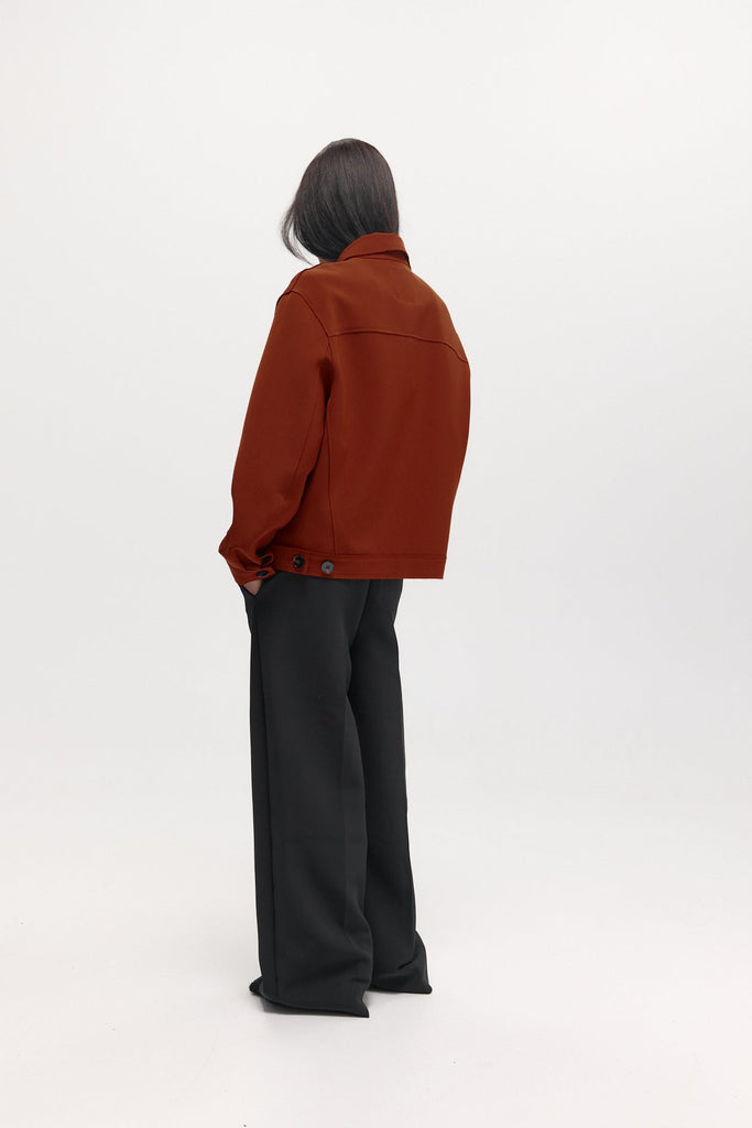 A gentle update on western-inspired tailoring, the Austin Jacket in earthy sambal is crafted from structured bonded suiting for a refined yet relaxed silhouette. Raw-edge detailing and horn buttons bring subtle contrast, while its softly oversized cut speaks of effortless confidence.