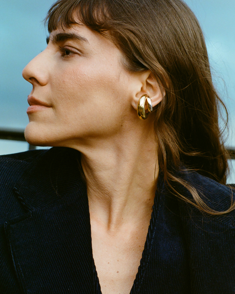 Crafted from rhodium plated brass, the Modernist Ear Cuff offers a sculptural accent with a minimal silhouette. Designed to slip on and sit comfortably along the ear.