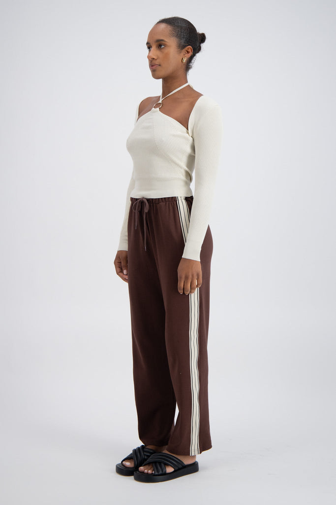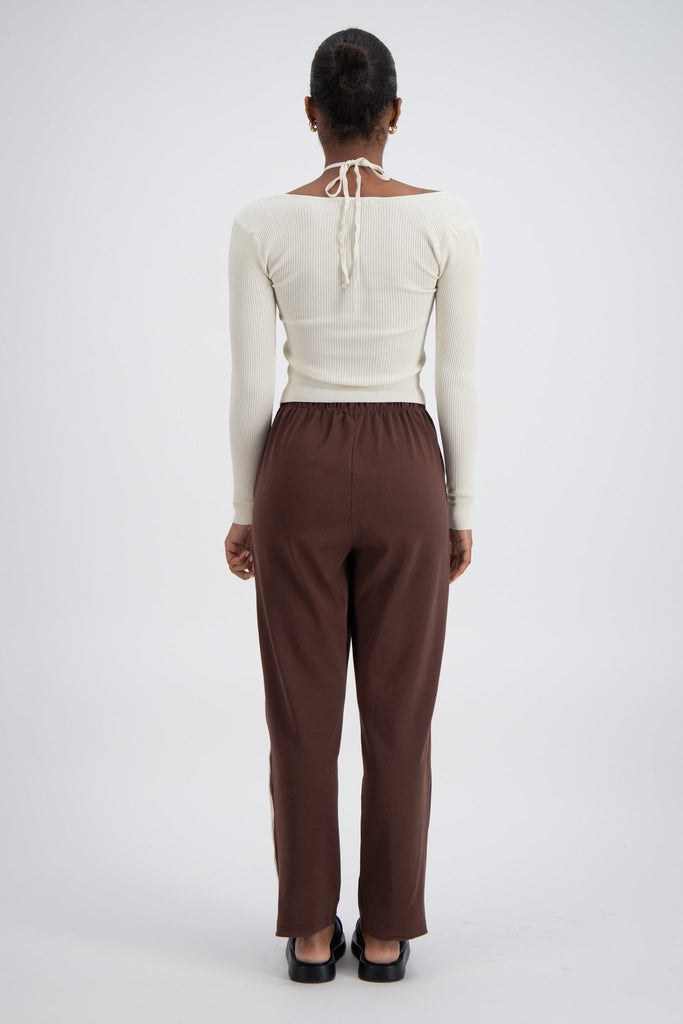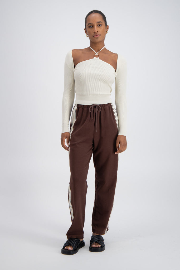 The Salina Top in Stone is a sculptural essential designed for seamless day-to-night styling. Crafted in a luxe rib knit, its chic halter neck silhouette and long sleeves combine elevated comfort with modern elegance.