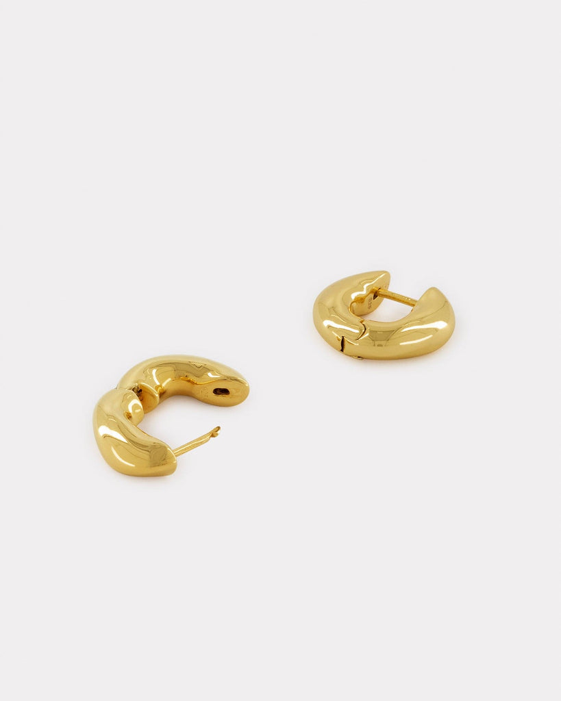 The Huggie Earrings in Gold offer a timeless, understated silhouette, designed to sit close to the earlobe for a subtle yet polished look. Perfect for both daily wear and layering with other pieces.