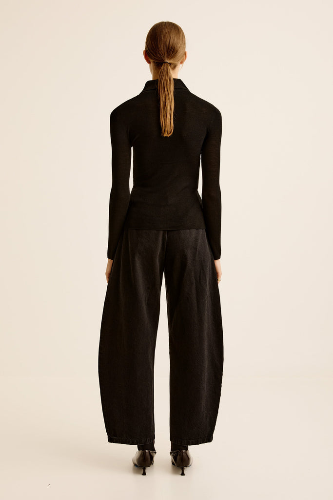 A sleek and slimline interpretation of the classic collared cardigan. Knitted in pure merino wool, this softly structured silhouette is shaped with a button-up front and subtle collar — elevated minimalism for everyday layering.