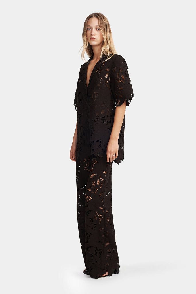 The Loretta Lace Shirt in Cedarwood is a romantic staple reimagined with modern tailoring. Crafted from pure cotton lace, it combines soft texture with considered structure.