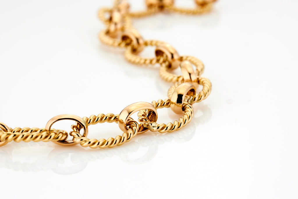 Elegant in detail and timeless in weight, the 18ct Yellow Gold Twist Bracelet by Olivia Bond is hand-twisted for a subtly textured finish. Designed to sit fluidly on the wrist, this piece speaks to craftsmanship, substance, and everyday refinement.
