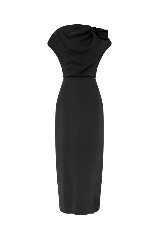 A vision of refined glamour, the Grand Illusion Maxi Gown is designed to captivate with its fluid lines and sculptural elegance. Crafted from luxurious crepe satin, the gown drapes effortlessly over the body, creating a silhouette that is both commanding and graceful. The soft sheen of the fabric catches the light with every movement, making it a timeless choice for statement occasions.