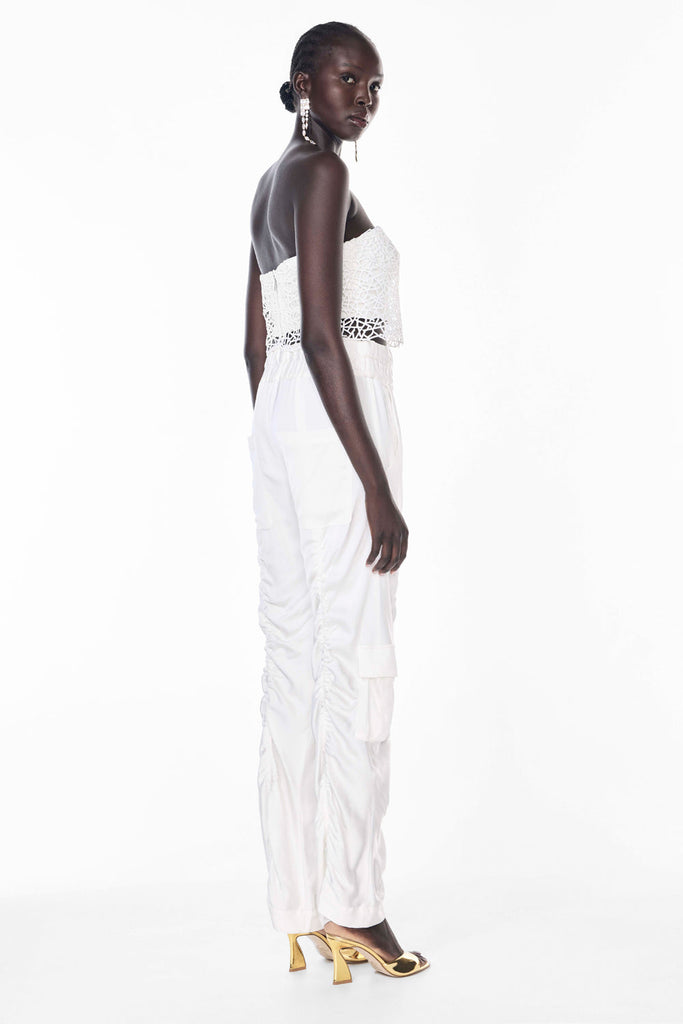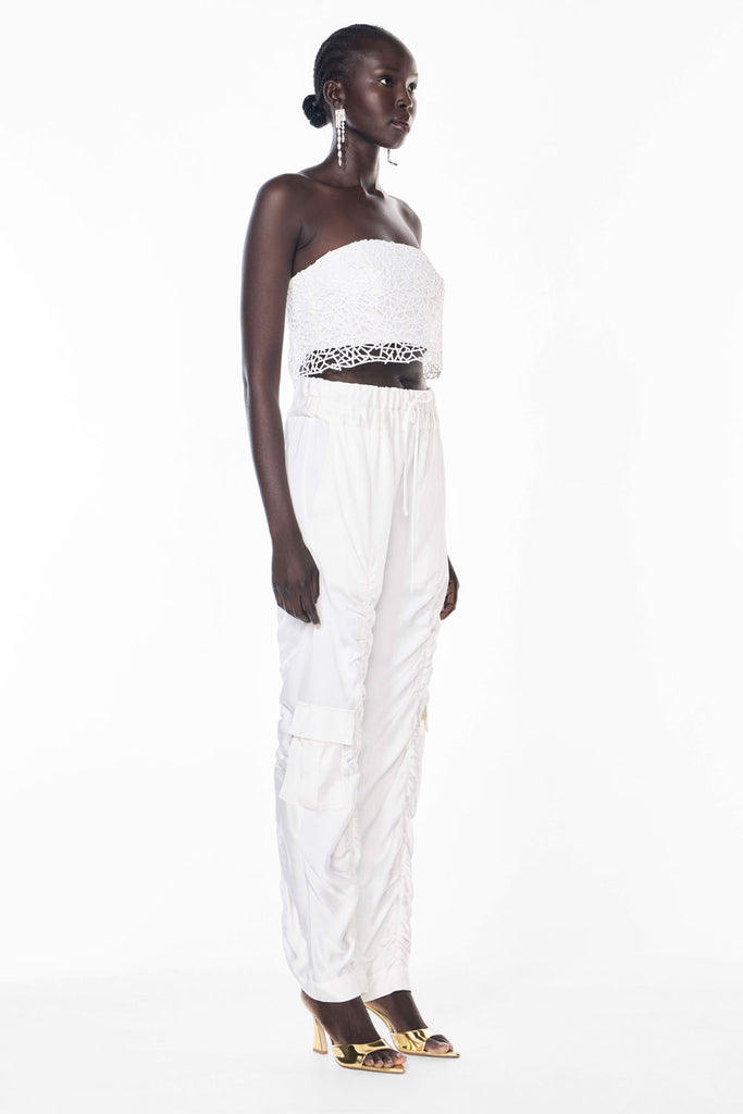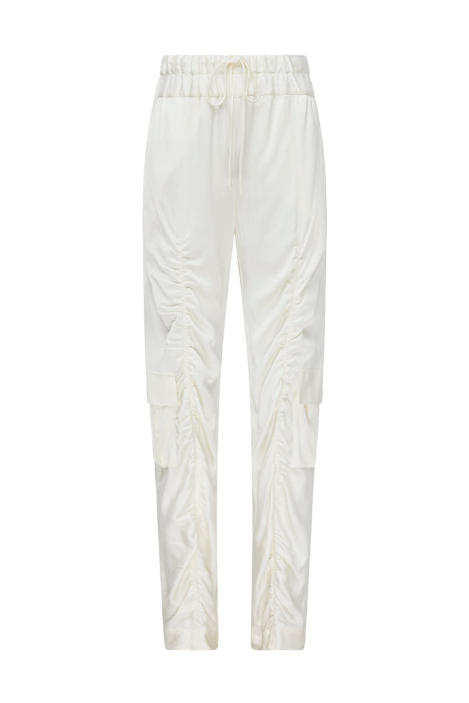 Effortless and refined, the Off Duty Pant in White redefines relaxed sophistication. Crafted from a luxuriously soft viscose blend with a hint of polyester for durability, these pants drape beautifully to create a flattering silhouette. The breathable cupro lining adds a silky finish against the skin, ensuring comfort in every wear. Perfect for elevated casual looks or polished daywear.