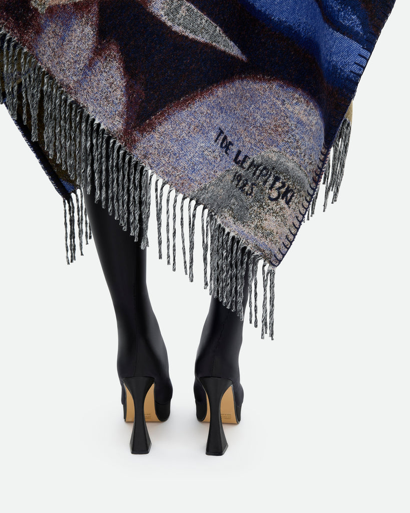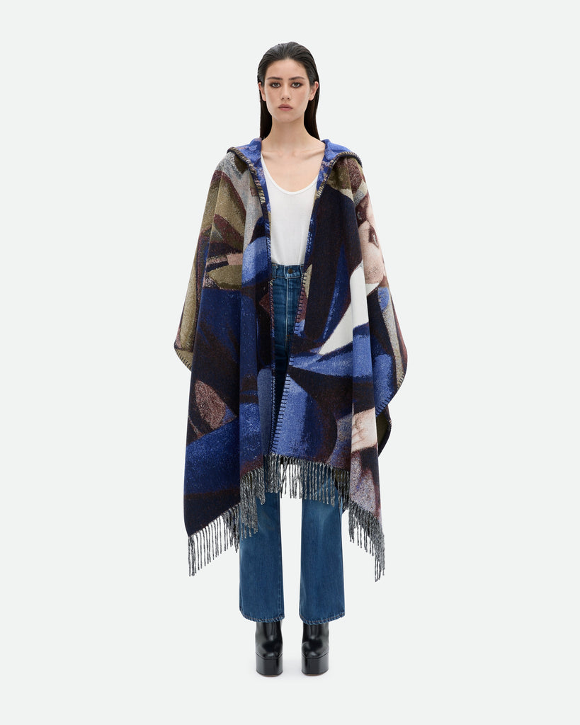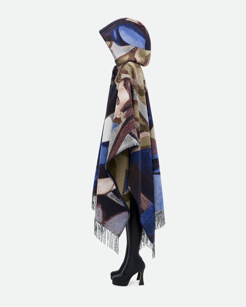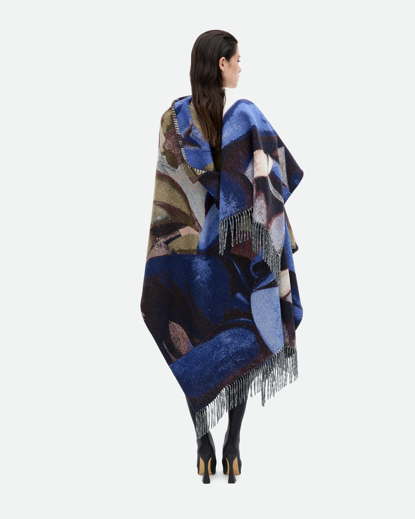 A portrait of decadence in motion, The Marquis Cape drapes art and craftsmanship across the shoulders. Woven from a luxurious cashmere and virgin wool jacquard, it features a custom placement of Tamara de Lempicka’s Portrait of the Marquis d'Afflitto. The fabric produced in Italy by the renowned Piacenza Cashmere mill brings old-world richness to a thoroughly modern silhouette.