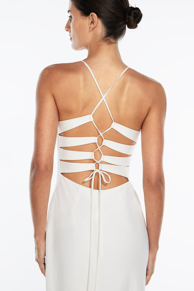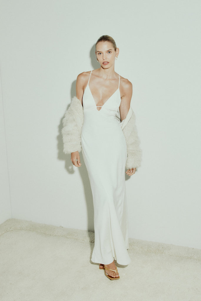 A modern icon of understated glamour, the Time To Shine Slip Dress blends sleek minimalism with a luminous finish. Crafted from a premium polyester blend—part recycled for a conscious touch—it drapes effortlessly to skim the silhouette with a fluid, sensual ease. Designed for moments that call for quiet confidence and refined shine.