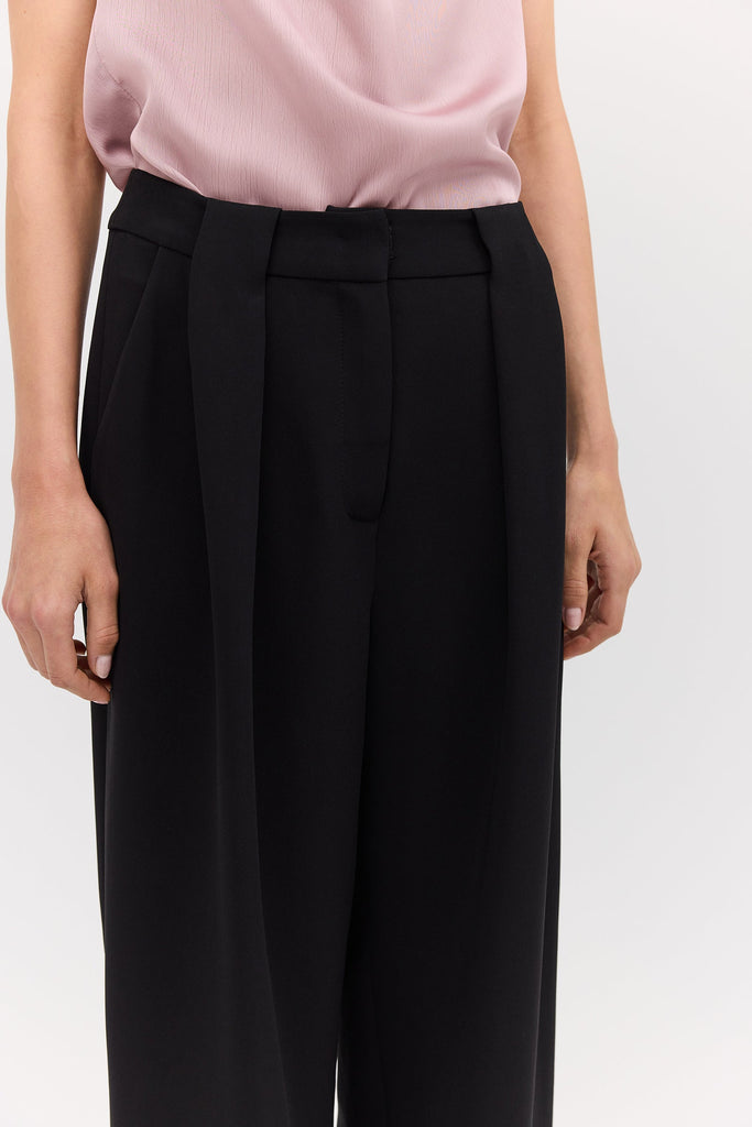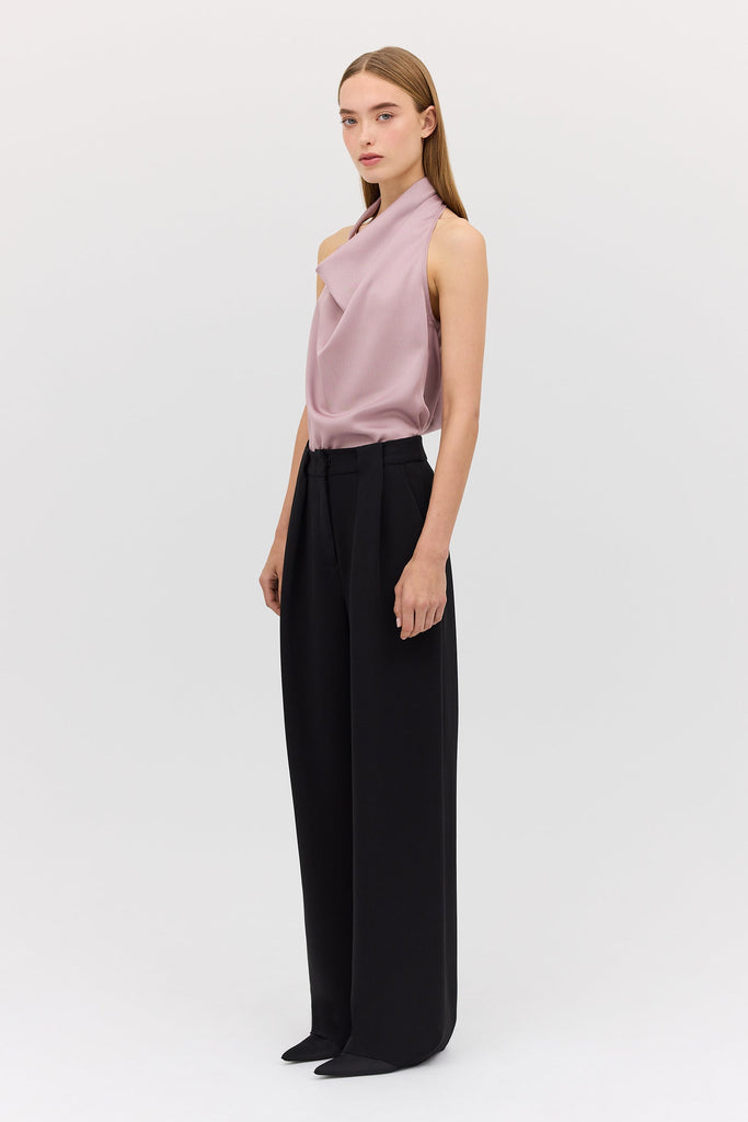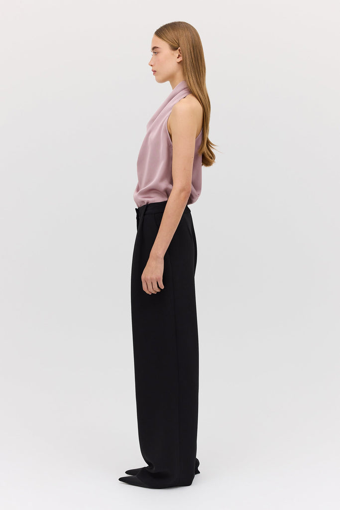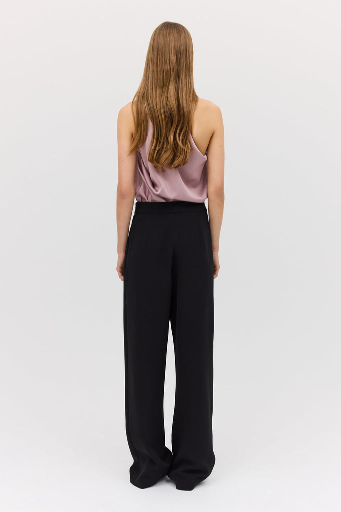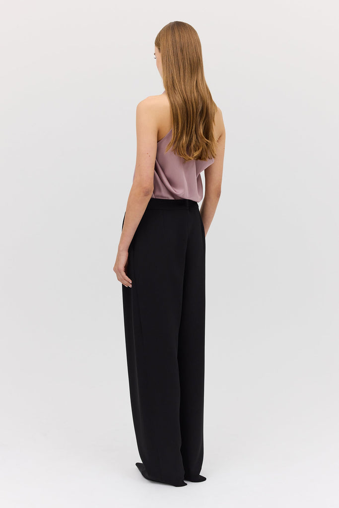The Bianca Spender Black Suiting Affinity Pant offers a relaxed take on modern power tailoring—its mid-rise, straight boyfriend-style cut drapes with graceful ease. Crafted in fluid, low-maintenance viscose with signature drape, these pants bring both comfort and quiet impact to tailored wardrobes.