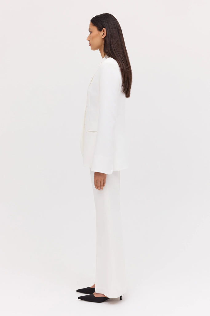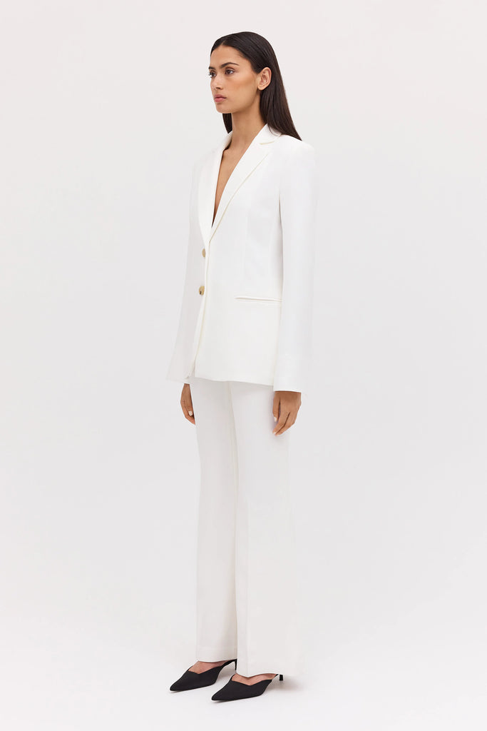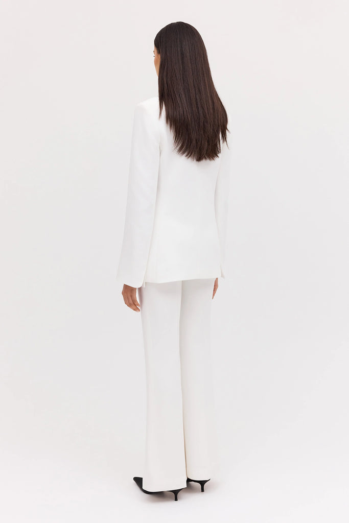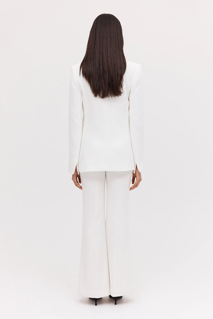 The Bianca Spender Ivory Crepe Nadja Pant refines classic tailoring with a flattering flared silhouette that elongates the leg. Fitted through the hip and thigh before gently flaring at the hem, it offers sculptural ease and understated poise—ideal for both boardroom polish and elevated weekend dressing.