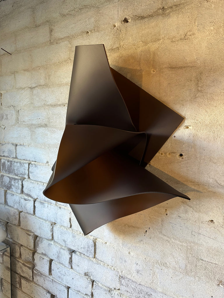 Enquire NowTan Arlidge is a Sydney based sculpture artist who crafts fluid forms that seem to have been captured mid-flight. PICCOLO #11 is a medium-to-large wall sculpture composed of light diffusion polymer. Measuring 56 x 53 x 31cm, it sweeps outward in dynamic, angular folds—its matte surface catching and softening the light across each plane. Mounted to the wall, it appears to shift in tone and volume depending on the viewer’s position, offering a dramatic yet refined spatial presence.