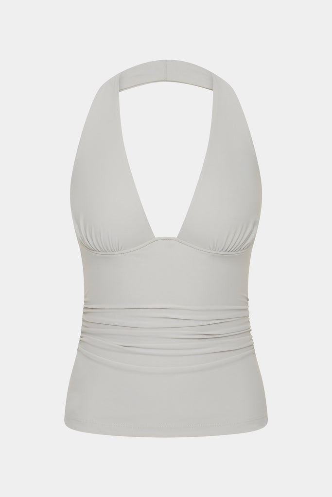 The Elm Halter Top is a sleek, form-fitting silhouette with an open back and halter neckline. Crafted from a stretch fabrication with a smooth lining, it offers both structure and comfort.