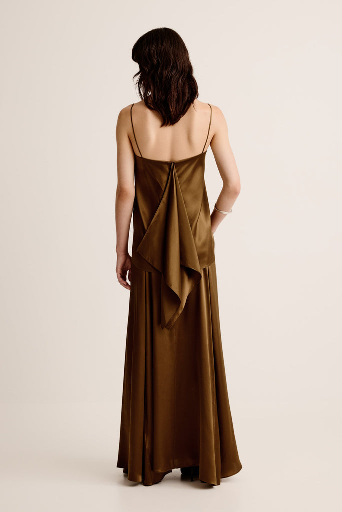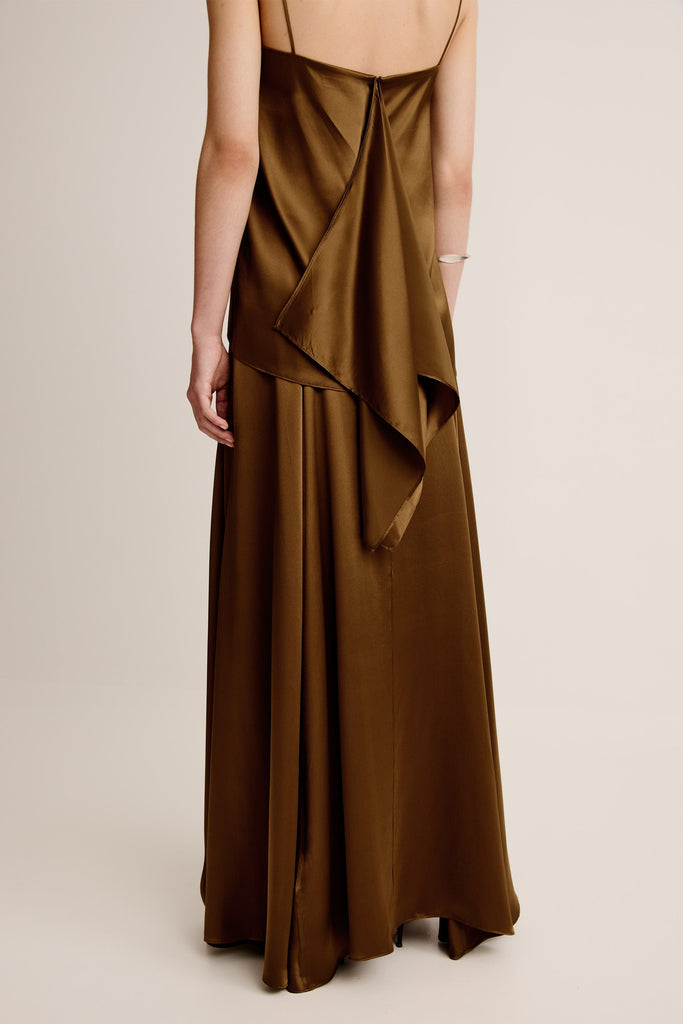 Fluid and refined, the Finesa Skirt is cut on the bias in lustrous silk satin. Designed to sit at the waist and fall softly through the body with a natural drape.