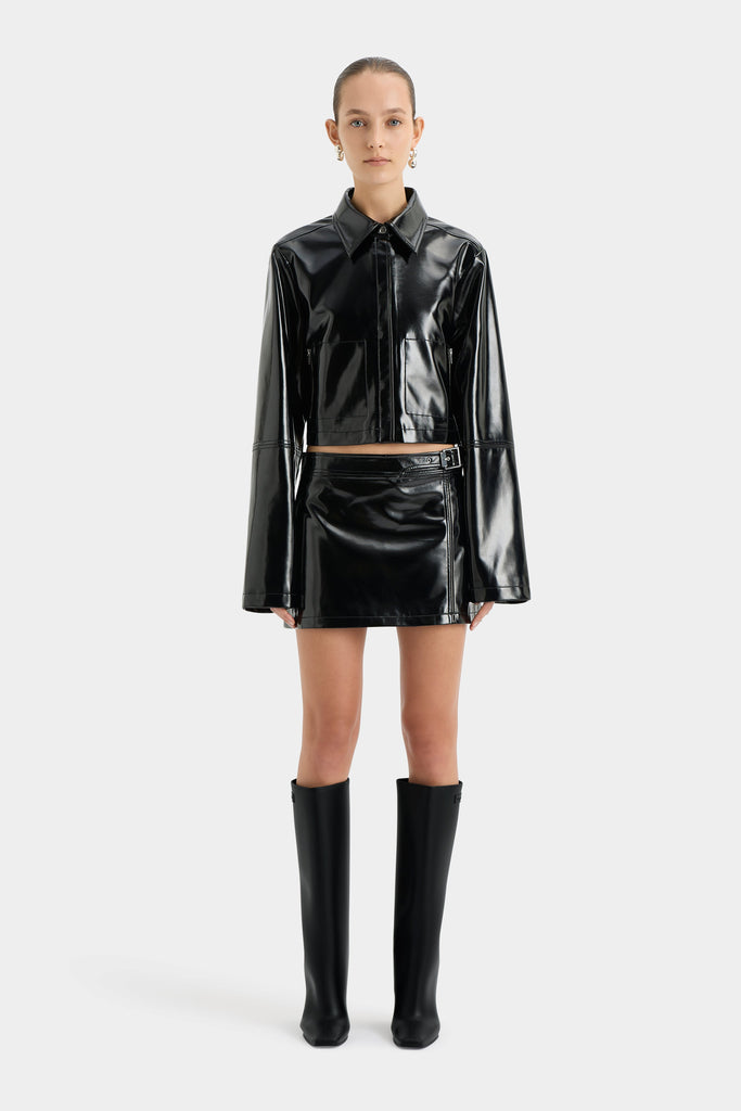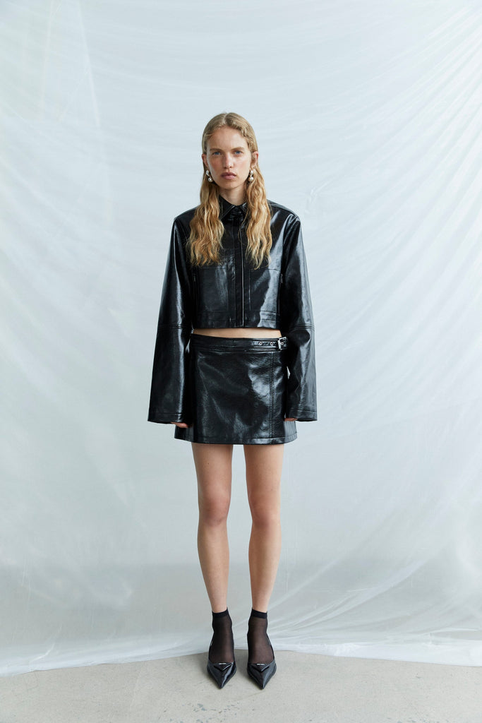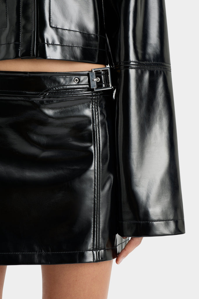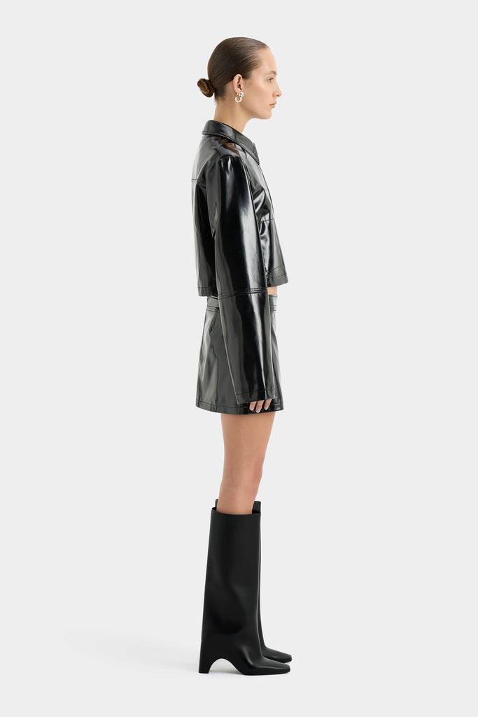 Faux patent leather fabrication with soft hand feel and high shine finish
