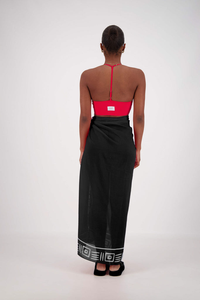 Refine your summer look with the Rosetta Pareo Black - a soft, lightweight cotton piece that can be styled in various ways, making it a must-have beach accessory.